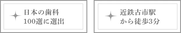 大阪の羽曳野市にある加藤総合歯科・矯正歯科は、近鉄古市駅から徒歩5分。無料専用駐車場に、提携パーキング(1h無料)がクリニックの前にあり、お勤めの方もご年配の方にも、とても通いやすい場所にあります。