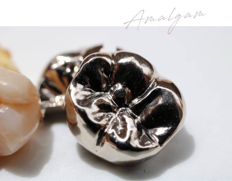 アマルガムとは、銀とスズの合金に銅や亜鉛を添加した粉末を水銀で練ったものです。