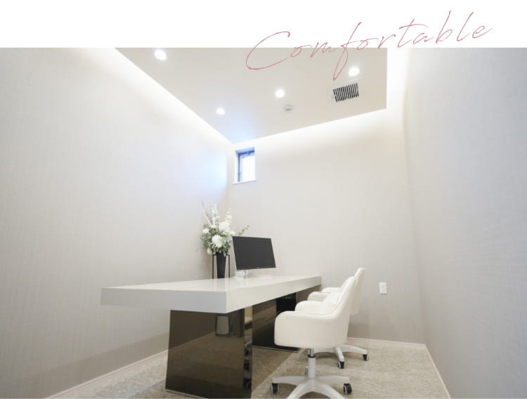 患者様としっかり対話をしお悩みを聞くために、プライバシーに配慮した個室のカウンセリングルームとお子様と一緒でも落ち着いてお話ができるように託児所をご用意しています。