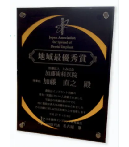 日本歯科インプラント普及協会より、平成26年以降5年連続で地域最優秀賞を受賞しています。