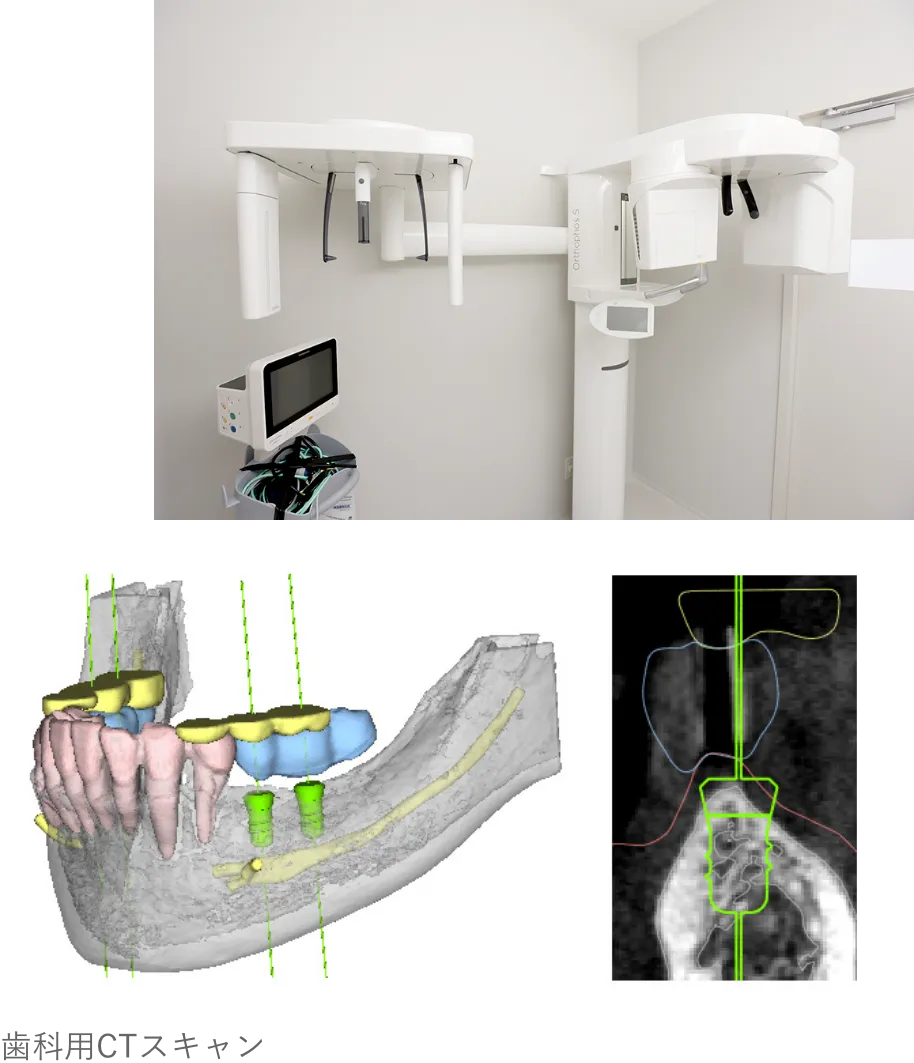 CTスキャンを活用して口腔内の立体的なモデルを作成し、歯の状態を正確に分析。その結果を基に精密なインプラント治療計画を立てます。