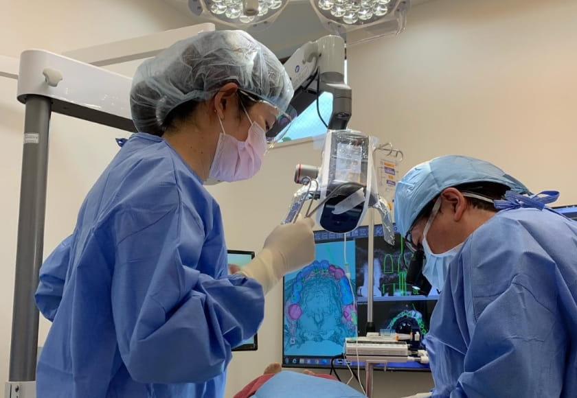 インプラント手術で最も注意を払わなければならないことの一つが、細菌感染です。細菌感染を起こすと、インプラントはしっかりと骨にくっつかず、抜け落ちてしまいます。そのため、まずは手術の段階で完璧な細菌感染対策を行う必要があります。