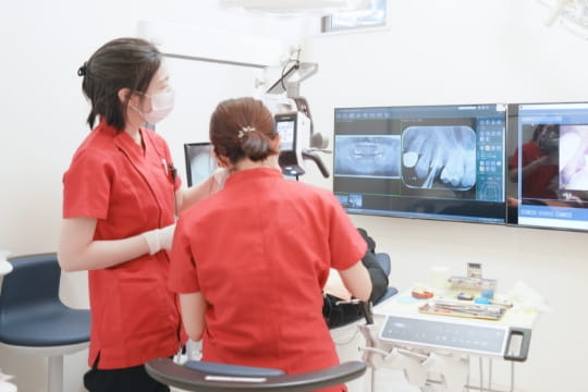 歯科衛生士と歯科医師より検査結果をご説明します。ご自身の歯・お口の中・その周囲がどういう状態なのかを専門的な知識とともに把握して頂きます。その上でどのように治療を進めていくかを我々と一緒に計画していきます。