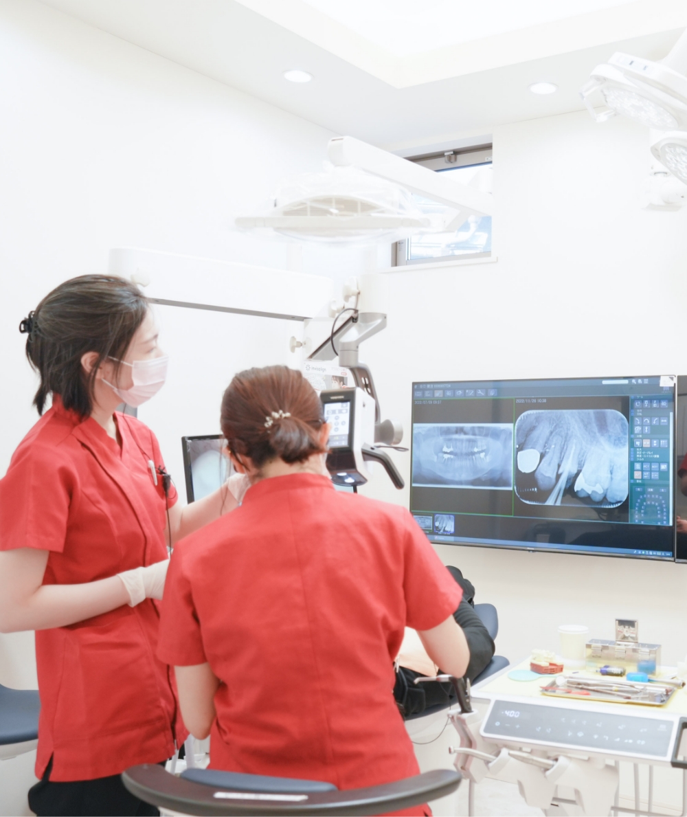 歯科衛生士と歯科医師より検査結果をご説明します。ご自身の歯・お口の中・その周囲がどういう状態なのかを専門的な知識とともに把握して頂きます。その上でどのように治療を進めていくかを我々と一緒に計画していきます。