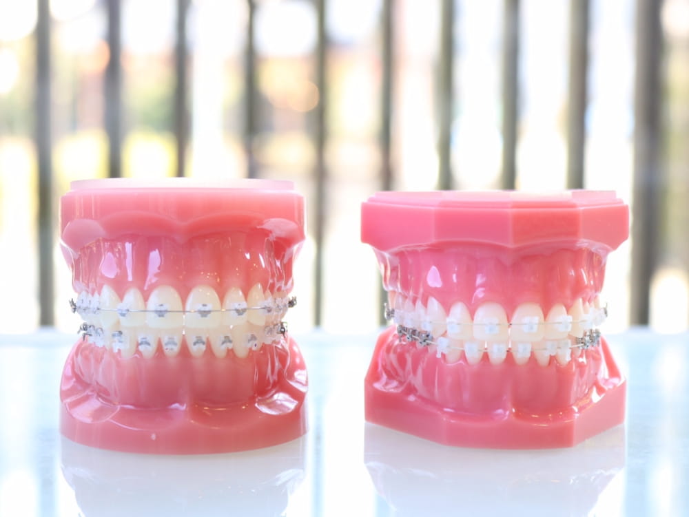 またワイヤー矯正というと銀色の装置というイメージはありませんか?現在はプラスチックやセラミックで作られた白や透明の目立たない矯正装置も開発されているので、矯正中見た目が気になるという方でも気軽に治療を受けていただけます。