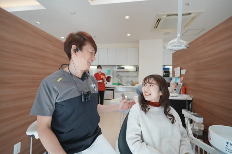 患者様の心配ごと、悩み、治療に関する疑問などを伺います。不安なことやわからないことは、何でもご遠慮せずお聞きください。十分納得いくまでお話し合いしましょう。治療方針、期間、費用等について詳しくご説明します。